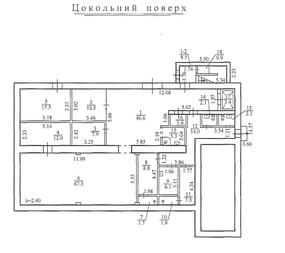 Приміщення включає в себе перший і цокольний поверхи, загальною площею 688, 8 кв.м.: