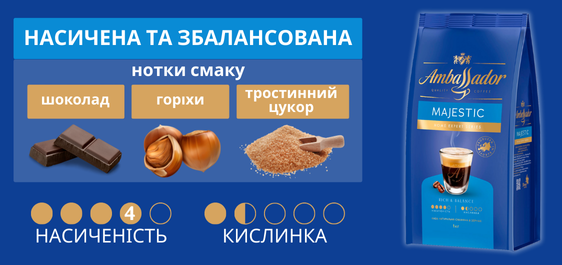 Кава 1 кг Ambassador Majestic в зернах м/уп: доставка додому по Україні