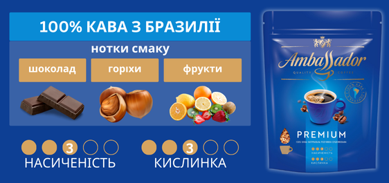 Кава 200 г Ambassador Premium натуральна розчиннa сублімовaнa м/уп: доставка додому по Україні