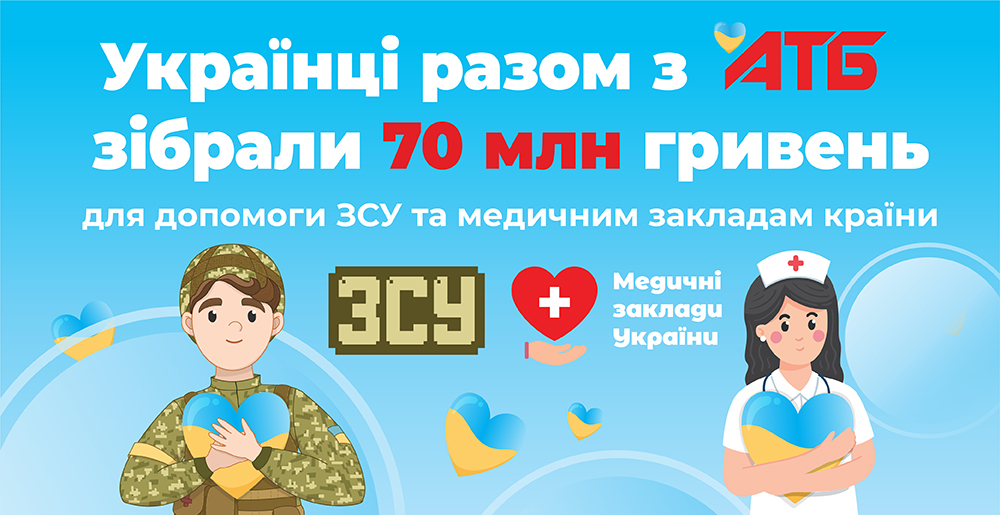 Українці разом із «АТБ» зібрали 70 млн гривень для допомоги ЗСУ та медичним закладам країни.
